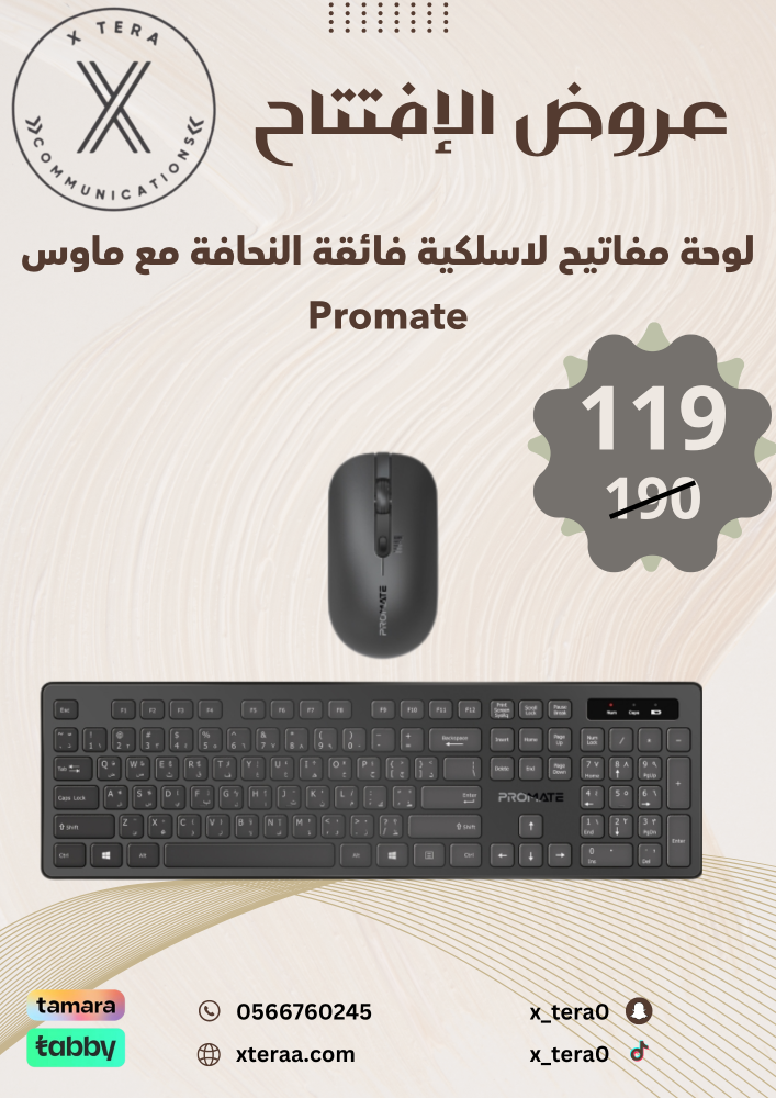 مجموعة لوحة المفاتيح والماوس لتعزيز الإنتاج - حرية لاسلكية كاملة مع اتصال 2.4جيجا هرتز - لوحة مفاتيح كاملة الحجم بمفاتيح ذات ارتفاع مناسب - تصميم رقيق وأنيق لتوف رث مساحة عل المكتب - تتصميم مري ح بزاوية ومرتفع لتحس ري الراحة - ماوس يمكن استخدامه بكلتا اليدين لراحة كاملة يلكس لا - الدقة مع ماوس يلى عا تتبع 1600البوصة قابل للتعديل يف نقطة - سهولة التوصيل والتشغيل تقنية المواصفات ال : لوحة المفاتيح - يسلك النطاق اللا : 10م تصنيف الإدخال: 1.5فولت/ 30أمب رث يلل م - ال رثدد: 2.4جيجا هرتز - البطارية: AAA * 1 رة لفأ ا : يسلك النطاق اللا : 10م - تصنيف الإدخال: 1.5فولت/ 20أمب رث يلل م - ال رثدد: 2.4جيجا هرتز البطارية: - AA*1دقة المستشعر: (def). 1000 // 1200/1600 800ديسيبل متوحد الخواص